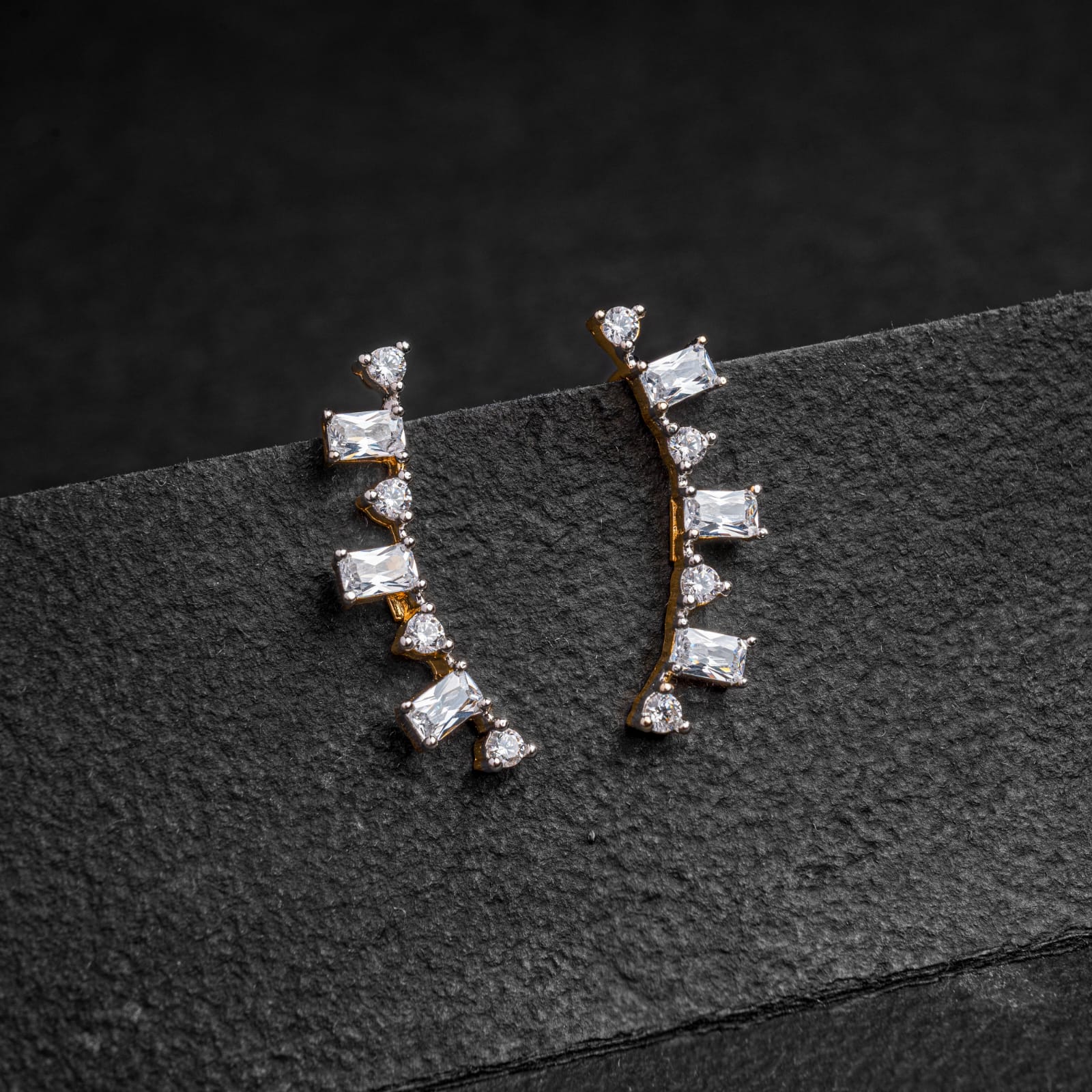 - Silver Gold Plated Baguette Stone Earr Cuff