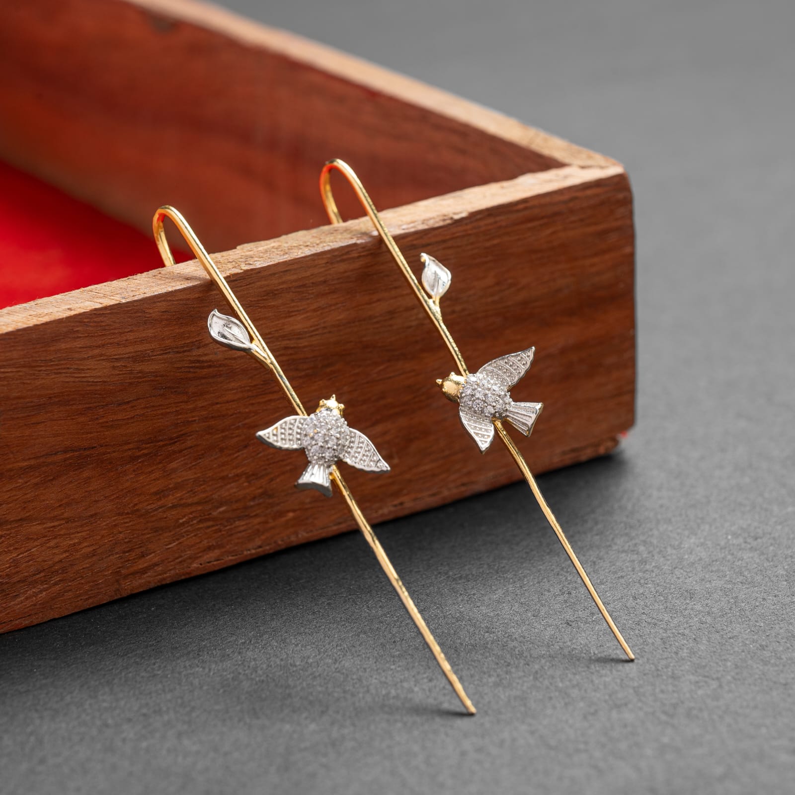 Crafted with precision and finished with a rich gold plating over pure silver, these ear sticks are perfect for both daily wear and special occasions. Their sleek and modern design makes them a must-have accessory for every jewellery lover.