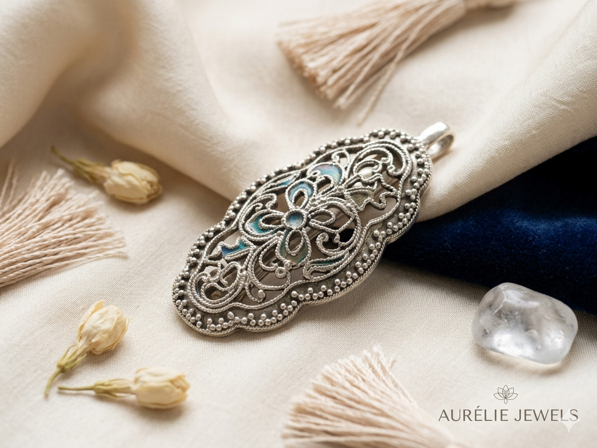 Sp Silver Jewellery Silver Hair Clip with Filigree Work. Featuring intricate filigree detailing, this piece showcases fine craftsmanship and traditional artistry. Perfect for both everyday styling and festive occasions
