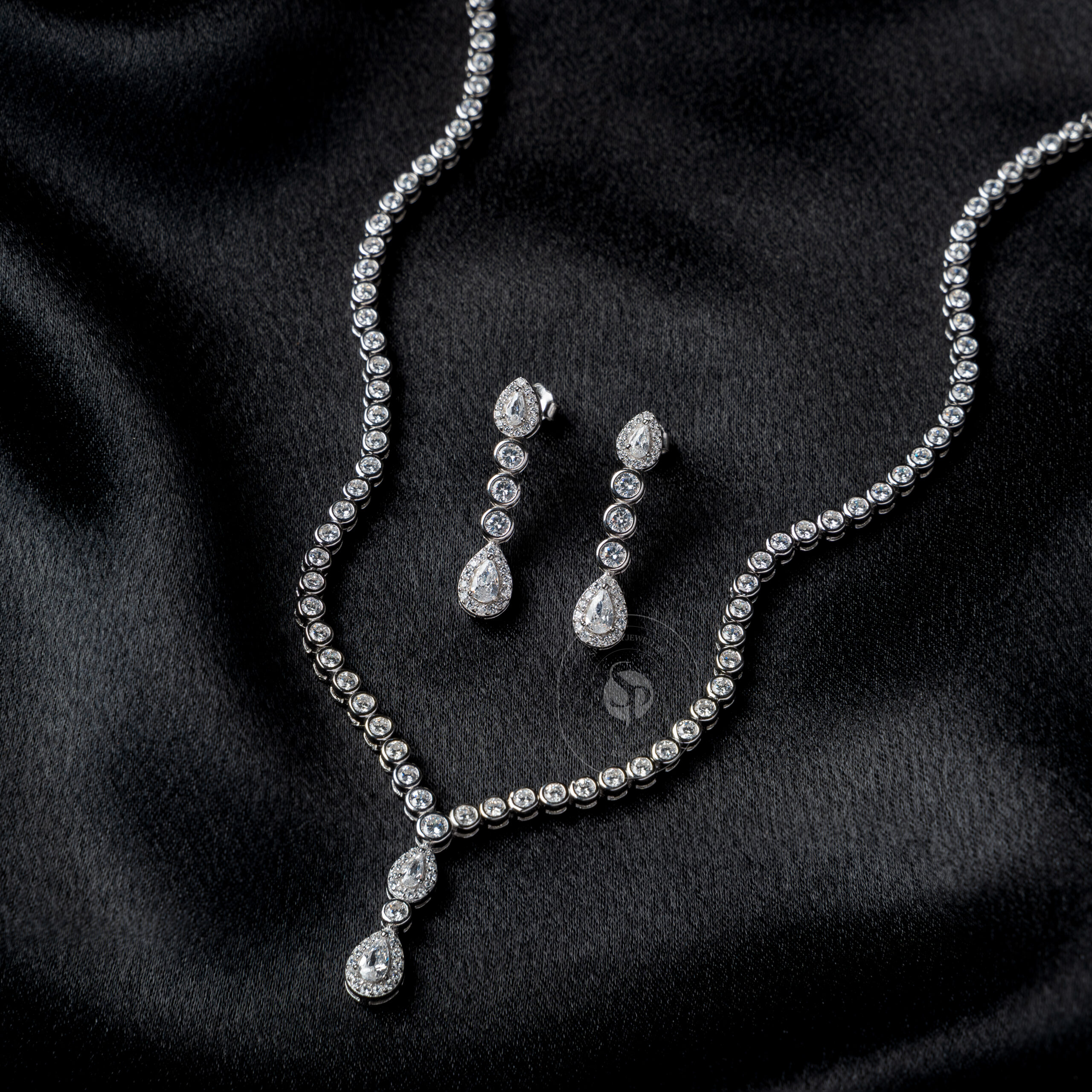 • Silver Solitair Silver Designer Necklace Set
